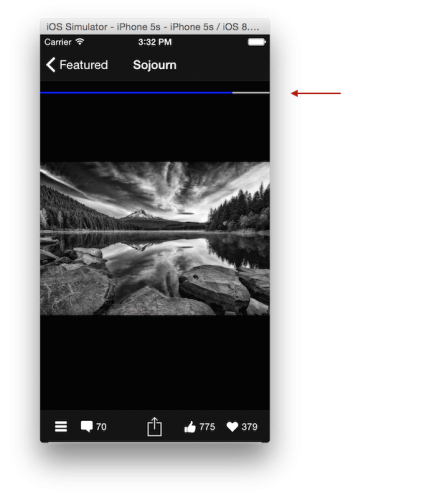 - 我们使用标准UIProgressView控件来显示图片下载进度。对其进行配置并将其添加到view视图上。